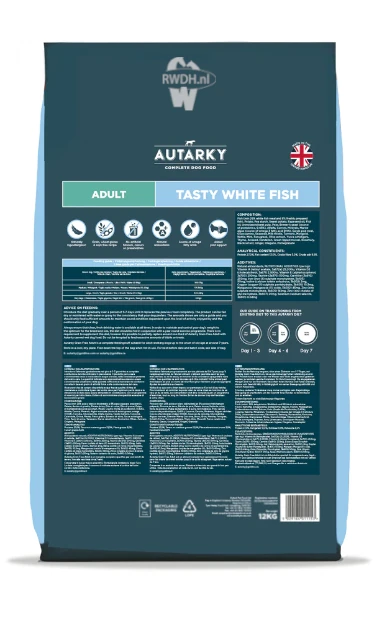 Autarky Adult White Fishย biedt een natuurlijk uitgebalanceerd graanvrij dieet, ideaal voor zeer actieve honden met een graanintolerantie/-gevoeligheid of die de voorkeur geven aan een graanvrij recept. Het bevat hoogwaardige eiwitten, energierijke aardappel, spijsverterings- en gewrichtsverzorgingsproducten en alle natuurlijke voordelen die u van een Autarky-product mag verwachten.