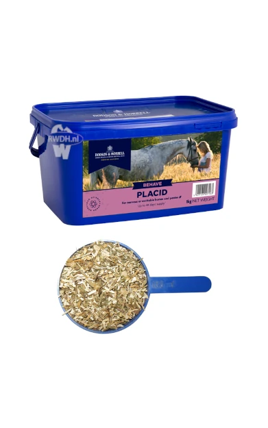 Placid is geschikt voor paarden en pony’s die vatbaar zijn voor prikkelbaarheid, rusteloosheid of stress en bevat: